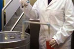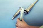 Rotate the handle as the sampler is pushed into the product. The sharp edge will cut into the product and the sample core will be deposited in the tube. Push the Discharge Rod down the Ice Borer to remove the sample.